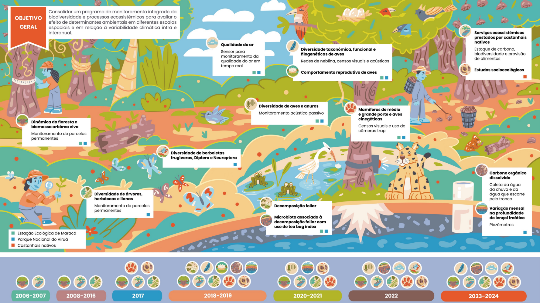 Consolidar um programa de monitoramento integrado da biodiversidade e processos ecossistêmicos para avaliar o efeito de determinantes ambientais em diferentes escalas espaciais e em relação à variabilidade climática intra e interanual.